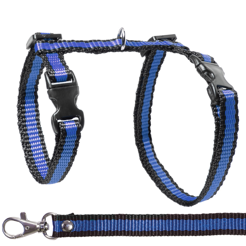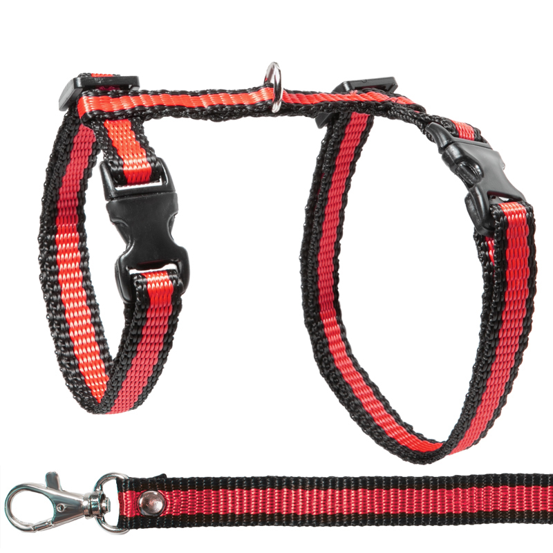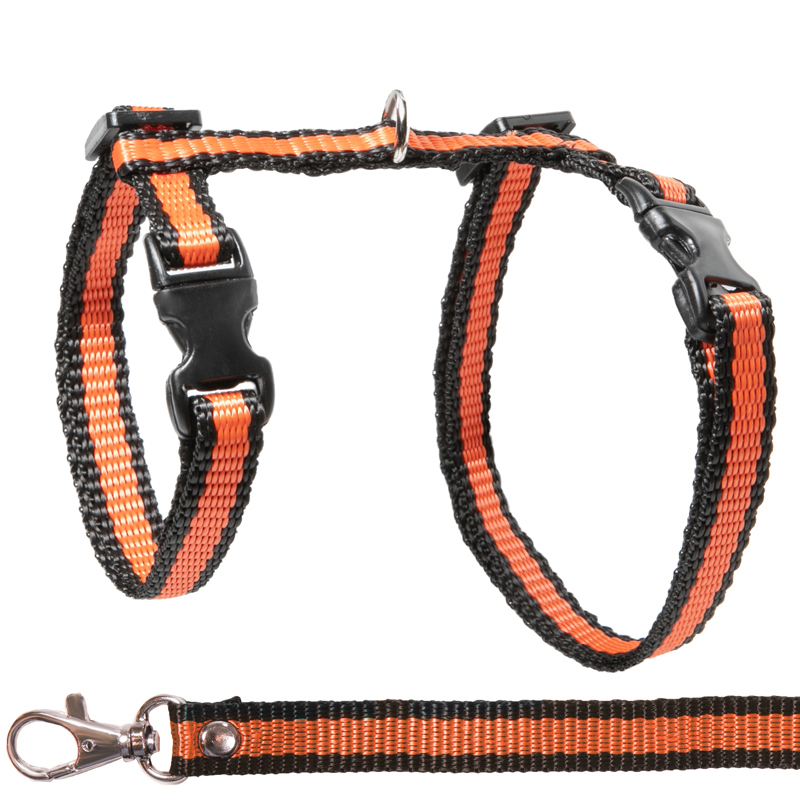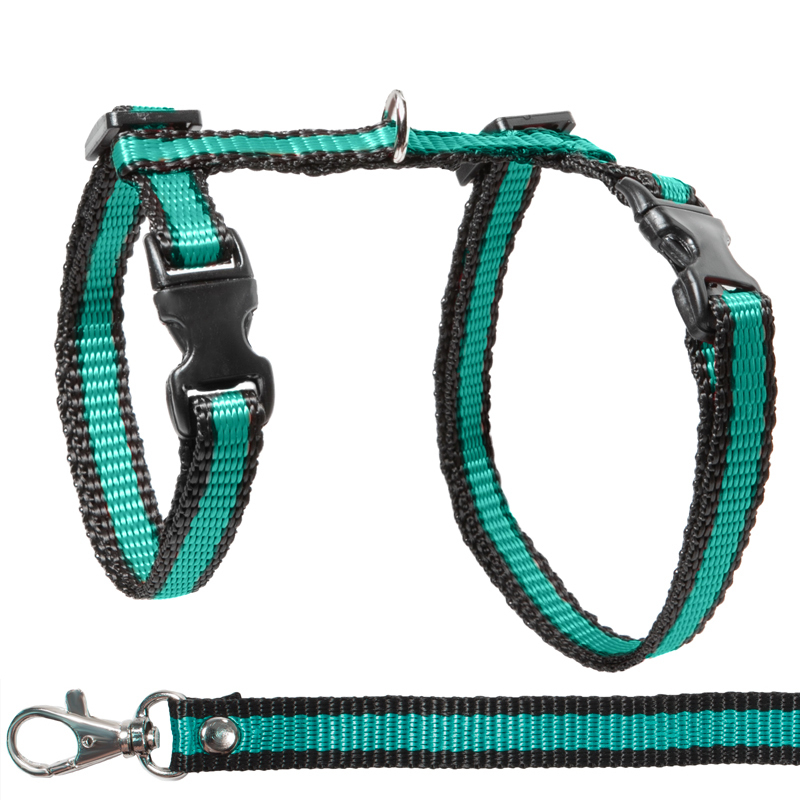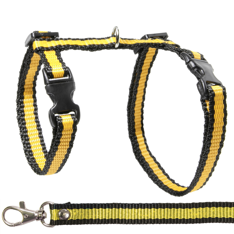 Комплект для кошек включает изящную шлейку и яркий поводок, изготовленные из качественного капрона с использованием металлической и пластиковой фурнитуры. Регулируемая шлейка с металлическими заклепками и надежной пряжкой обеспечат комфортную фиксацию изделия на теле животного без причинения вреда. Поводок длиной 1,5 метра оснащен специальным карабином, вращающимся вокруг собственной оси во избежание запутывания поводка на прогулке. Стойкий и насыщенный цвет комплекта не растворяется и не линяет, благодаря чему изделие не потеряет первоначального вида и не запачкает шерсть животного. Цвет: красный, оранжевый, голубой, синий, желтый.
