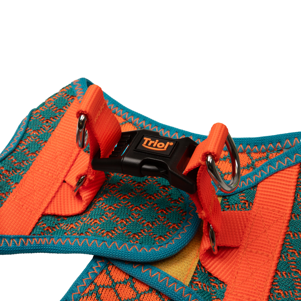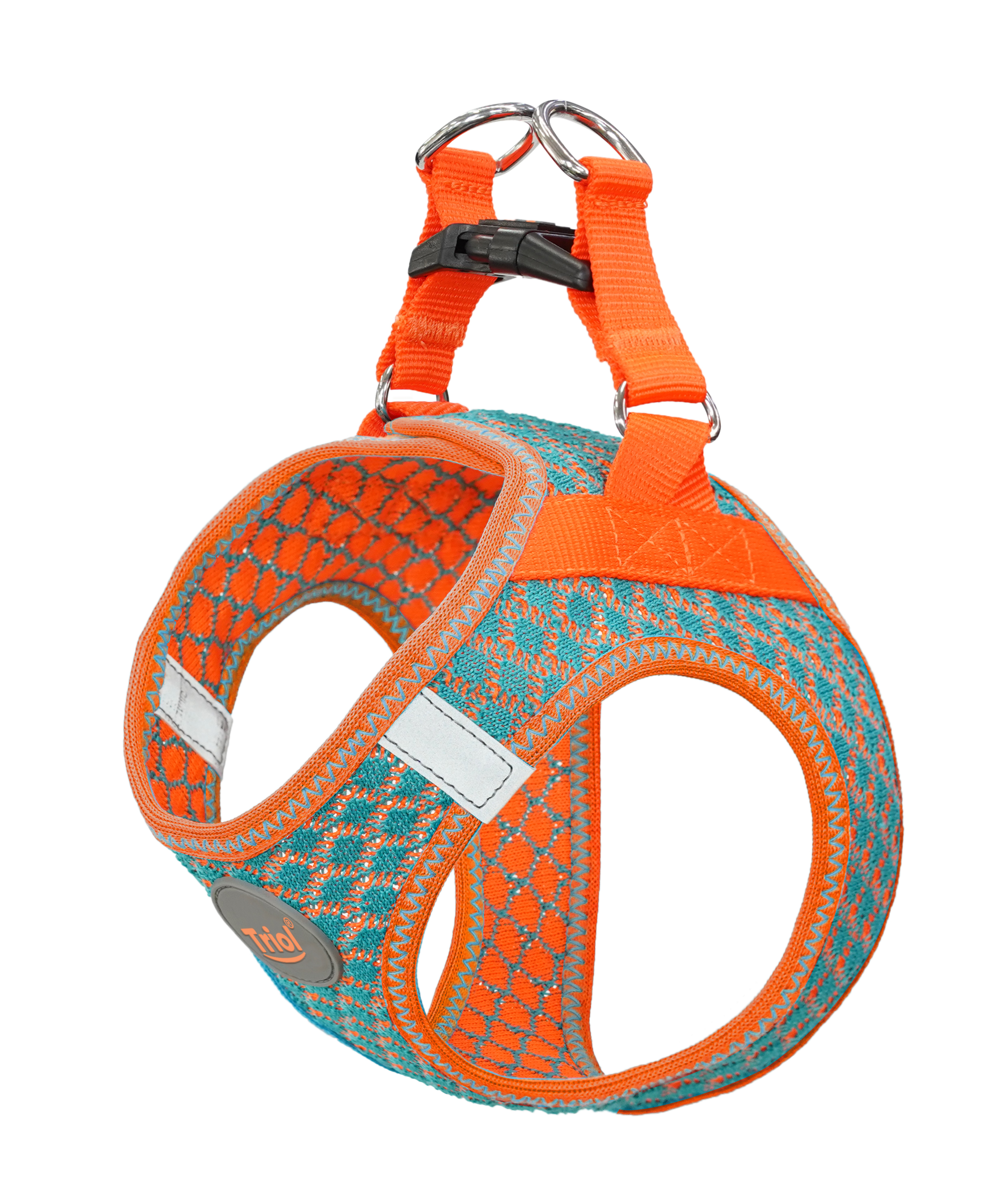 Мягкая и удобная шлейка-жилетка - функциональный аксессуар для четвероногих модников. Шлейка выполнена из высококачественного материала и имеет дышащую сетчатую поверхность, которая бережно прилегает к телу животного и хорошо пропускает воздух. Шлейка крепится при помощи широкой липучки и удобной пластиковой застежки на спине питомца и, благодаря своей легкости, не стесняет движений. Важная деталь: липучка данного типа не цепляет шерсть животного! Яркий цвет и светоотражающие элементы делают питомца заметным не только в пасмурную погоду, но и в ночное время. Размер шлейки: L (обхват груди 470-500мм). Цвет: голубой с оранжевым.