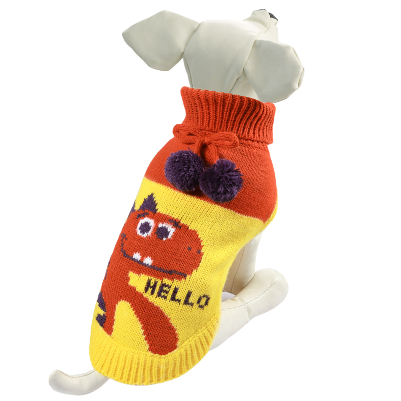 Теплый и оригинальный свитер с изображением дракончика - это удобный и функциональный аксессуар для собак, который просто незаменим в холодную погоду. Изделие защитит вашего питомца от ветра и согреет в непогоду. Свитер имеет стильный дизайн, а универсальный фасон не стесняет движений питомца во время прогулки. Вывязанная резинка по всему периметру низа изделия обеспечивает плотное прилегание свитера к телу, ворот украшен помпонами. Такой свитер с модным принтом станет украшением гардероба вашего питомца. Материал: акрил. Цвет: оранжево-желтый. Размер: 20см (XS).