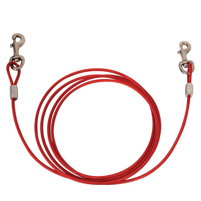 Надежный привязочный трос для собак, оснащенный двумя карабинами. Заключённый в пластиковую оплётку, он прослужит вам максимально долго. Удобные карабины обеспечат быстрое закрепление троса на выбранной для охраны территории и легко зафиксируются на вбитом в землю штопор-держателе. Максимальный вес животного: 25 кг. Размер изделия: 3000*5мм.