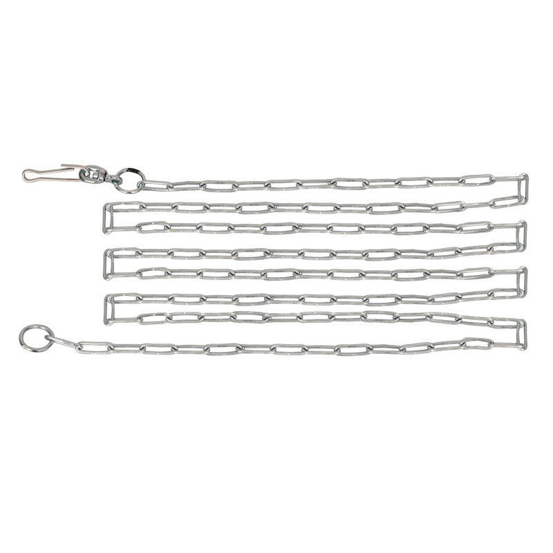 Эта стальная привязочная цепь для собак способна выдерживать рывки до 200 кг. Прочная и долговечная, она имеет надежное крепление и карабин, который обеспечит быстрое закрепление цепи на той территории, где необходимо обеспечить охрану. Расположенное с другого конца изделия кольцо можно закрепить на вбитом в землю штопор-держателе или импровизированном столбе. Диаметр проволоки - 5мм, длина - 2800мм.
