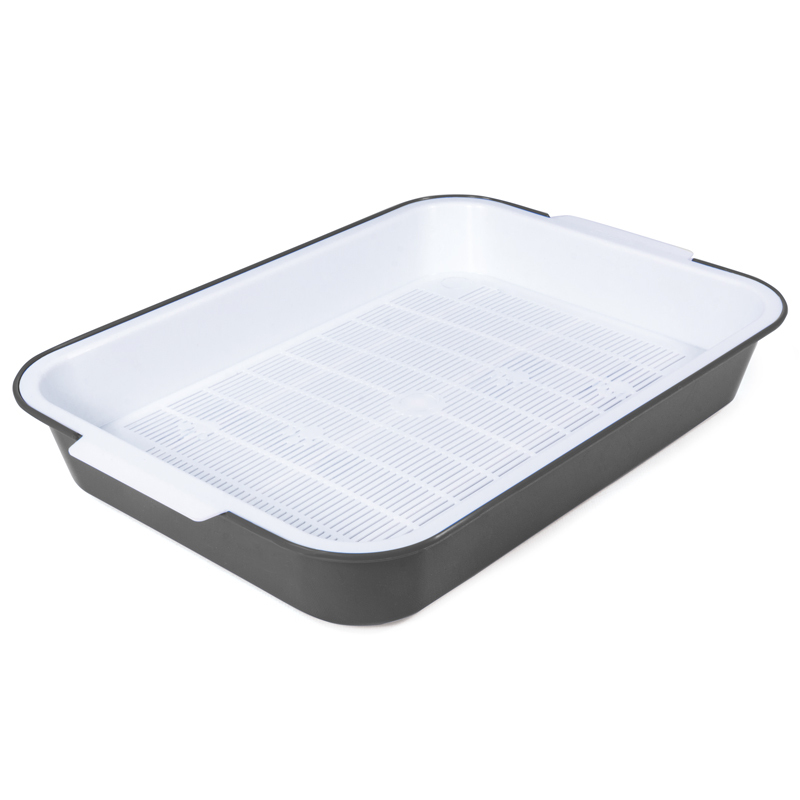 Туалет c белой сеткой - универсальный аксессуар для вашего четвероногого питомца. Такая модель идеально подходит для кошек, не любящих наполнитель. Съемная сетка максимально упрощает уборку, а компактные габариты изделия позволят разместить его где угодно с комфортом для животного. Туалет изготовлен из высококачественного пластика и легко чистится под струет воды при помощи моющих бытовых средств. Цвет: темно-серый.