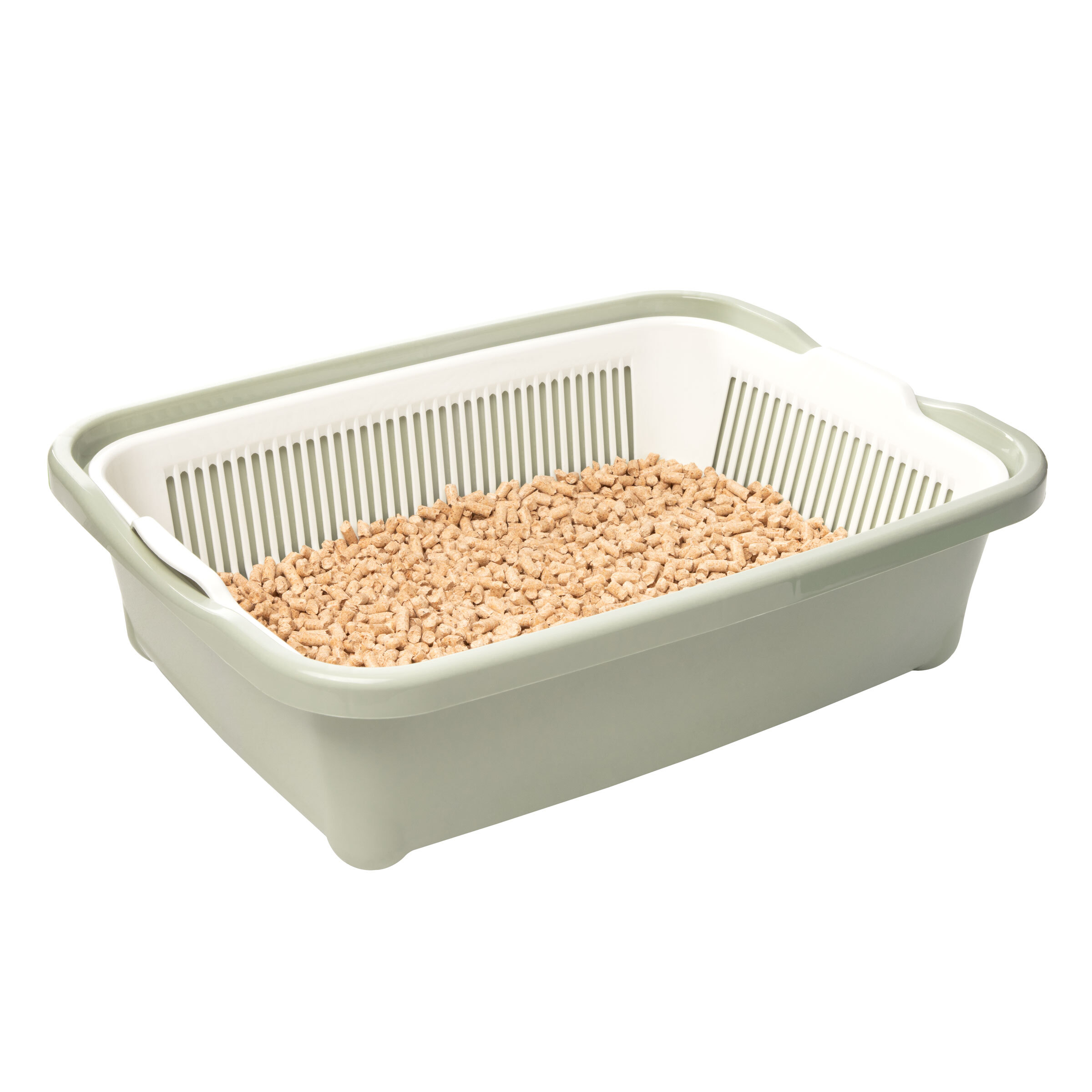 Пластиковый туалет высокий с сеткой - универсальный аксессуар для вашего четвероногого питомца. Съемная сетка максимально упрощает уборку, а компактные габариты изделия позволят разместить его с комфортом для животного в любом месте. Туалет изготовлен из высококачественного пластика и легко чистится под струей воды при помощи моющих бытовых средств. Размеры изделия: 420*320*125мм. Цвет лотка - оливковый, цвет сетки- белый.