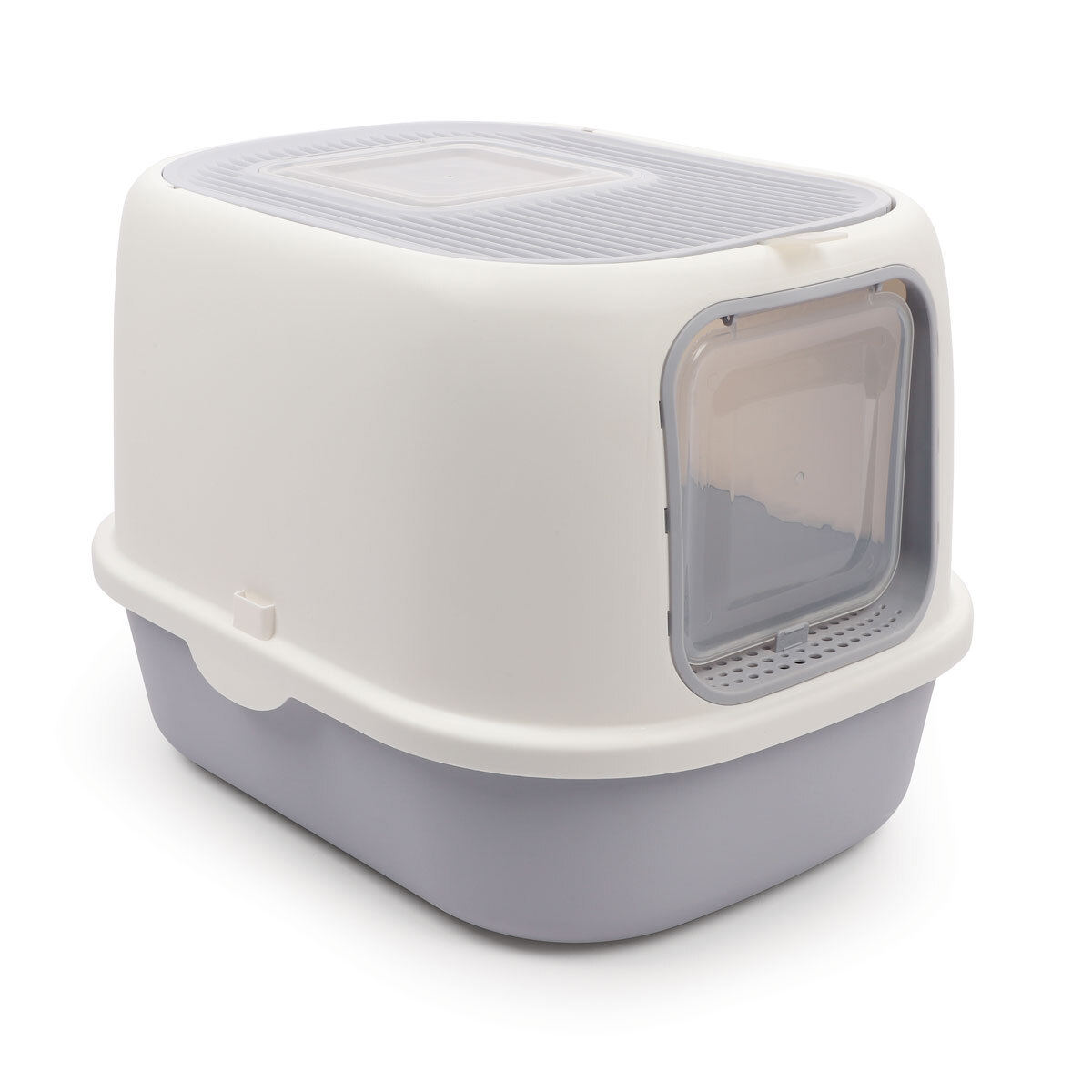 В туалете предусмотрено 2 двери. Дополнительным входом или выходом может стать крышка сверху. Крыша туалета оборудована специальным покрытием, которое очистит лапки кота и не допустит разбрасывание наполнителя за ее пределы. Направление двери можно отрегулировать самостоятельно и подобрать наиболее оптимальный вариант для удовлетворения потребности питомца в уединении и сохранения чистоты.