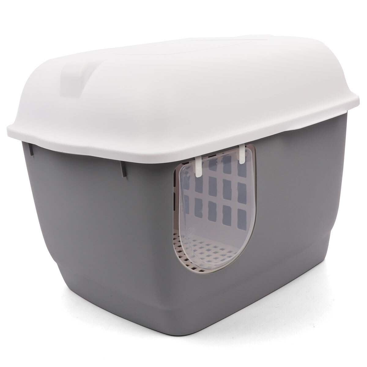 Откидная крышка – отличное решение для удобства уборки туалета. Функцию входа и выхода выполняет специальный коридор. Он предотвращает разбрасывание наполнителя и облегчает поддержание чистоты благодаря сетке снизу. Туалет изготовлен из износостойкого пластика и легко моется под струей воды при помощи моющих бытовых средств.
