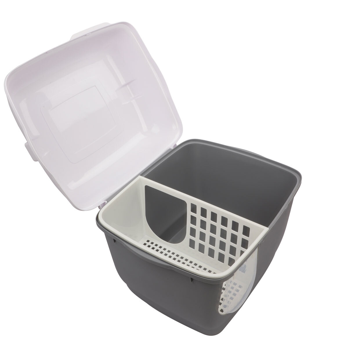 Цвет бокса: серый; цвет крышки: белый. Размер туалета: 575*440*440мм.