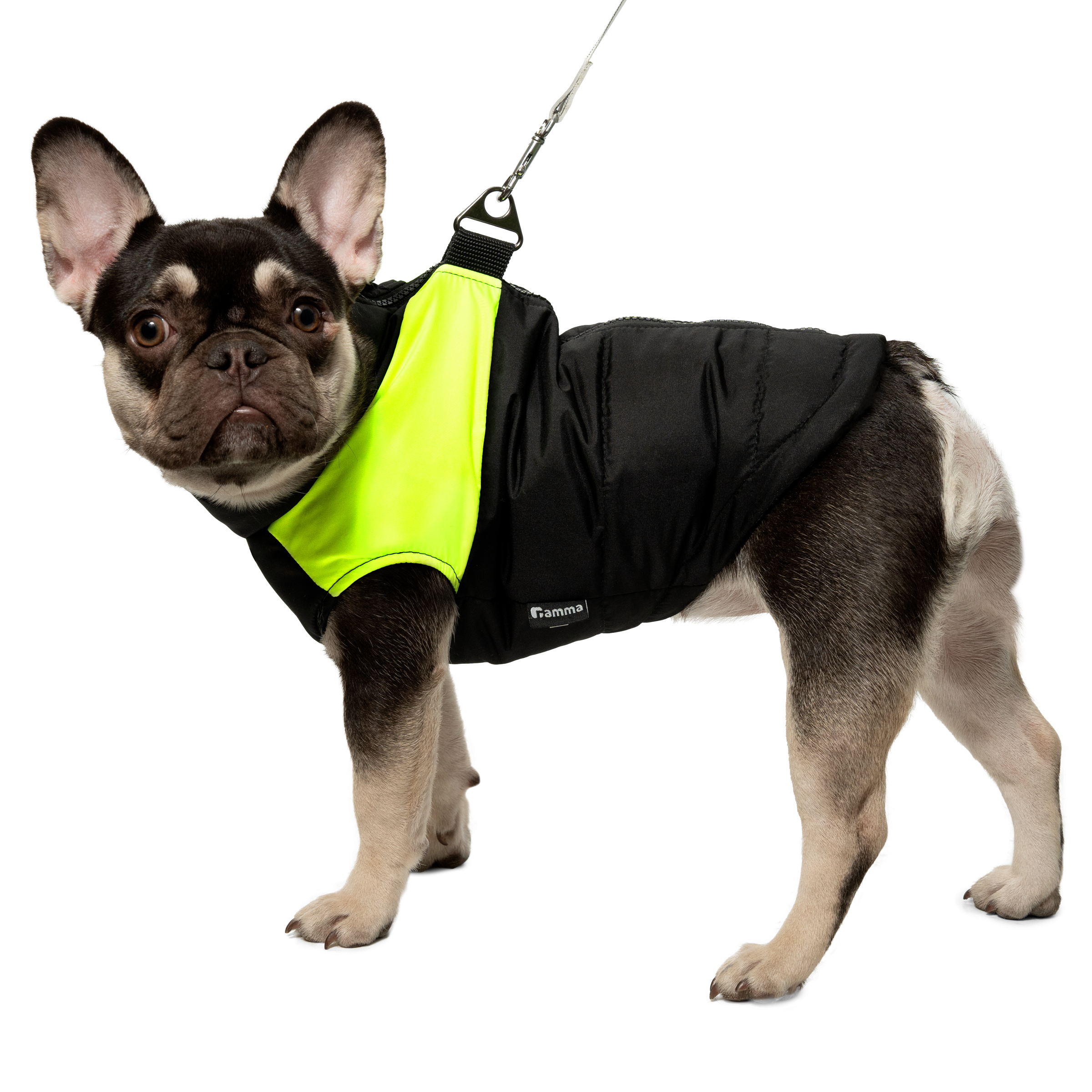 Удобный и функциональный жилет "Неон" выполнен из водоотталкивающей и ветронепроницаемой ткани, которая защитит питомца от холода и грязи. Застежка-молния на спине максимально облегчает одевание питомца, а два кольца для крепления поводка позволяют обойтись без дополнительной амуниции. Контрастная расцветка изделия сделает собаку яркой и заметной на улицах города. Размер: длина спины 300 мм, обхват груди 400 мм. Цвет: чёрно-желтый.